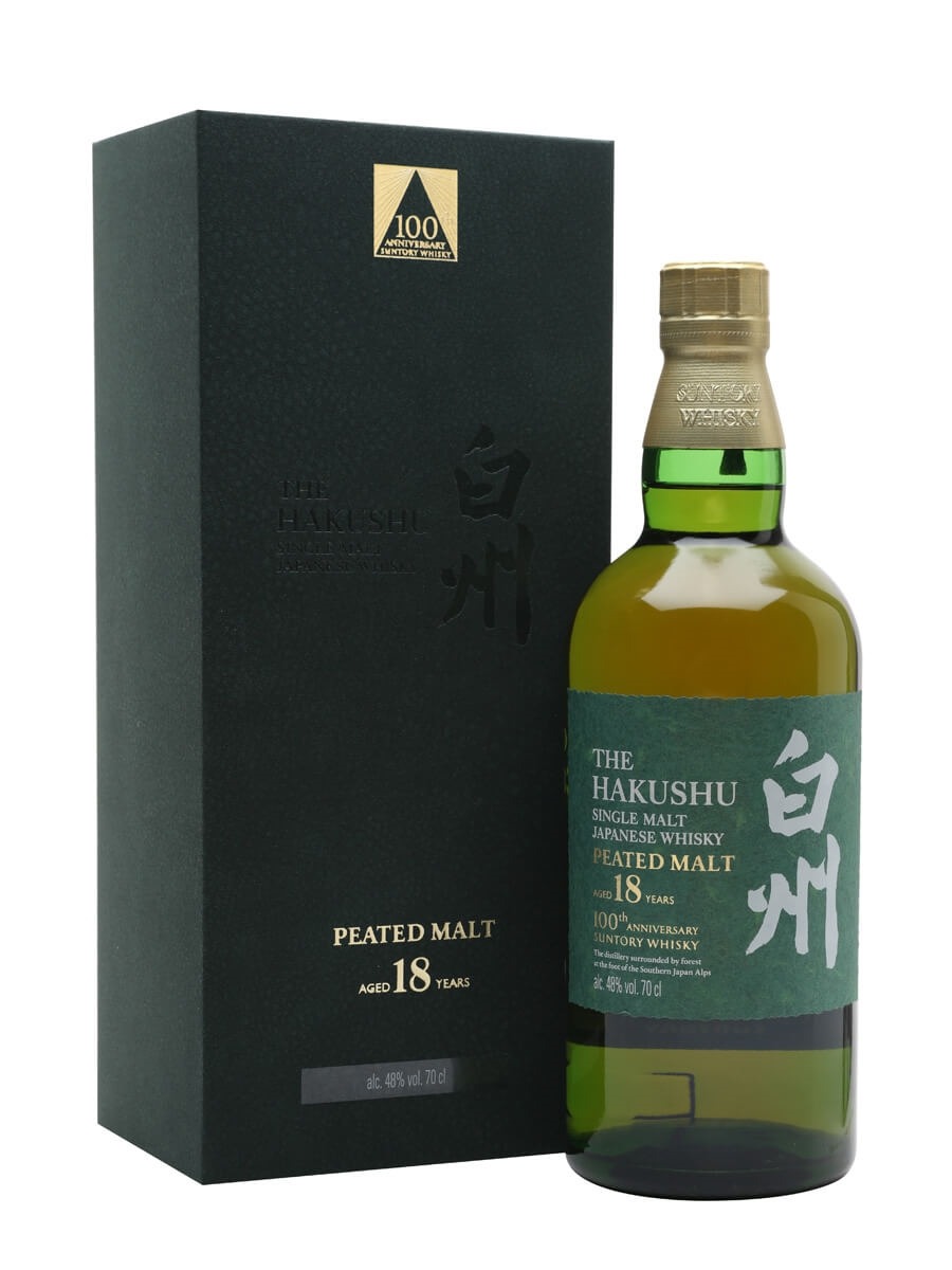 100th Anniversary Limited Edition. The Hakushu 18 Peated Malt is made up of carefully selected malt whiskies all aged for a minimum of 18 years in various casks, created in honor of Suntory Whisky’s centenary.